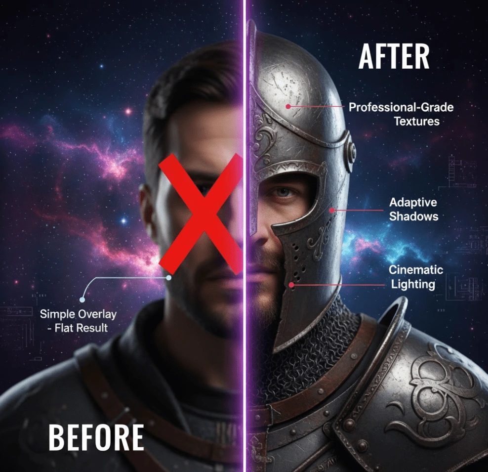 No more fake-looking filters. Our AI intelligently rebuilds the scene to make your face look like it truly belongs there.